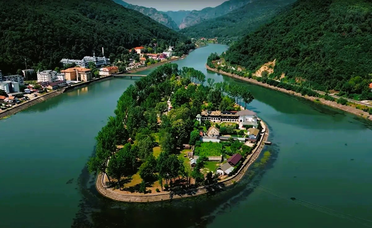 Obiective: Salina Ocnele Mari, Insula Ostrov, Schitul Ostrov